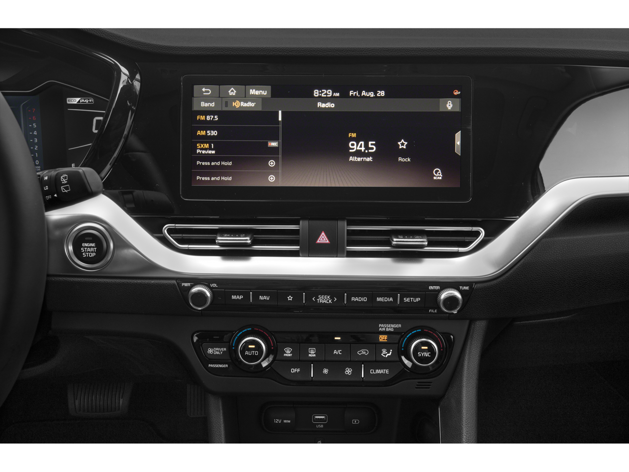 - Radio: AM/FM/HD/SiriusXM w/Navigation System -inc: 10.25" navigation AVN 5.0, harman/kardon premium surround sound w/Clari-Fi, 8 speakers, external amplifier, integrated subwoofer, UVO link w/Android Auto & Apple CarPlay smartphone integration, auxiliary USB input, Bluetooth® wireless connectivity w/voice recognition, steering wheel mounted audio controls, 7" supervision meter cluster, 1 front 12V power outlet, 1 front USB charger and wireless phone charger