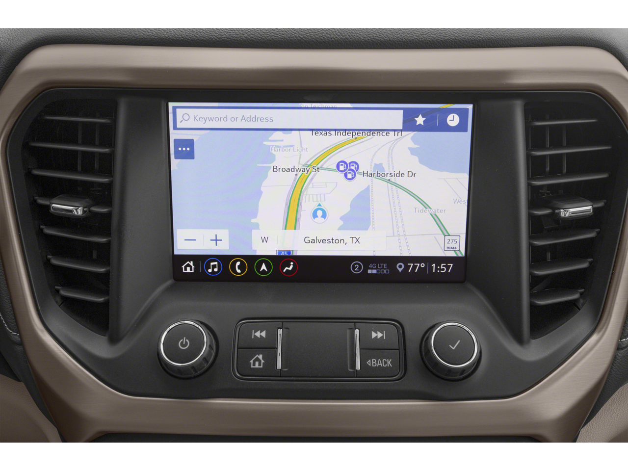 - Audio system, 8" diagonal GMC Infotainment System with Navigation includes multi-touch display, AM/FM/SiriusXM stereo, Bluetooth® streaming audio for music and most phones, Android Auto and Apple CarPlay capability for compatible phones, advanced voice recognition, in-vehicle apps, personalized profiles for infotainment and vehicle settings