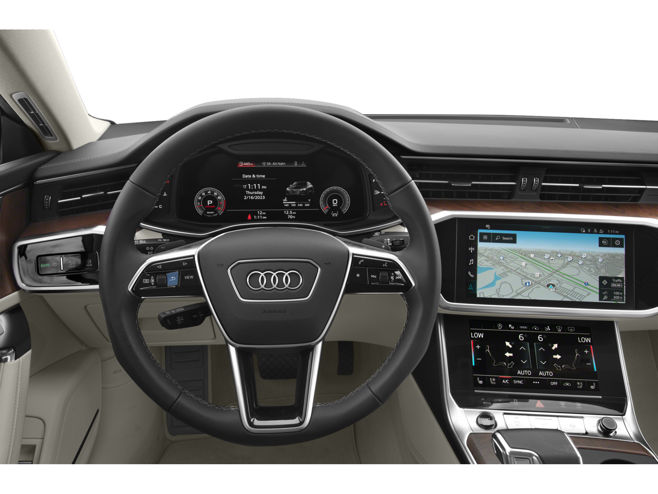 - Radio: MMI Navigation Plus -inc: 10.1" upper and 8.6" lower screen MMI touch response, Audi Connect CARE, PRIME & PLUS (limited time subscription), Audi music interface w/front and rear USB ports (data+charge), Audi smartphone interface (wired Android Auto and wireless Apple CarPlay), Audi sound system, Bluetooth® preparation for mobile phone and SiriusXM all access service (w/3-month trial subscription)