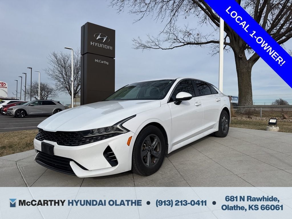 Recent Arrival! Glacial White Pearl 2022 Kia 4D Sedan K5 LX FWD 8-Speed Automatic I4 CARFAX One-Owner. Odometer is 1998 miles below market average! 29/38 City/Highway MPG